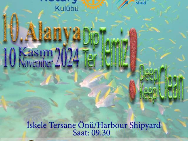 Alanya Rotary Kulübü olarak, çevreye duyarlı projelerimizden biri olan ve bu yıl 10’uncusunu gerçekleştirdiğimiz “Dip Temiz, Tertemiz” etkinliğimizi, Alanya Belediyesi Çevre Sağlık Müdürlüğü iş birliğiyle ve sivil toplum kuruluşlarının katkılarıyla hayata geçirmiş bulunuyoruz.