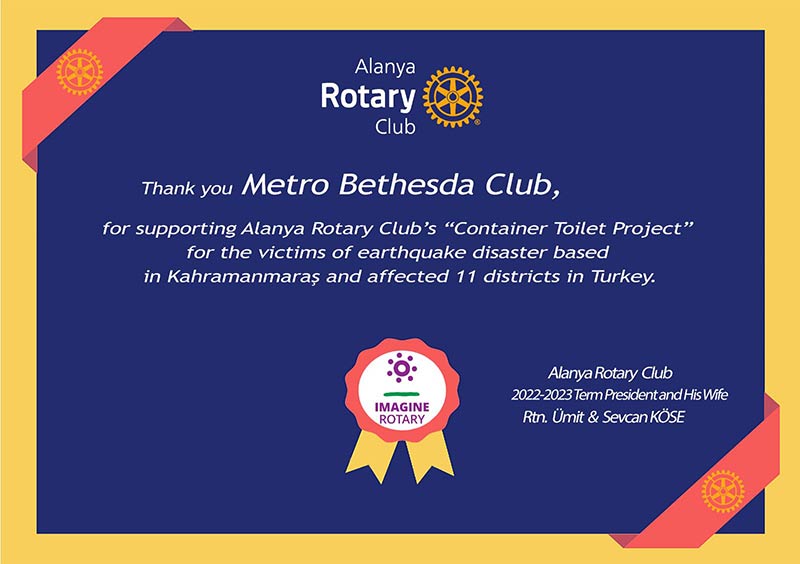Alanya Rotary Kulübünün deprem bölgesi için yapmış olduğu Tuvalet Kontainer projesinin son 2 uniteside Samandağına ulaştı. Bu son iki Unitenin yapımına sponsor olarak katkı yapan Amerika dan Metro Bethesda Rotary Kulubünede sonsuz teşekkürler. Bugüne kadar projeye destek olmuş olan herkese ayrı ayrı teşekkür ediyoruz. Allah böyle günleri bize bir daha yaşatmasın inşallah.